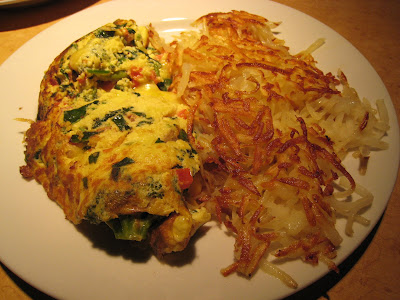 Still good anyway :o) I ordered a veggie omelete that consisted of Broccoli, Mushrooms, Tomato, Spinach, and Cheese.